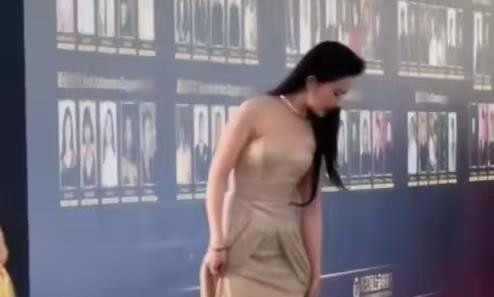 最令人咂舌的是,她后背的礼服都要勒出赘肉了,而且还很松弛。